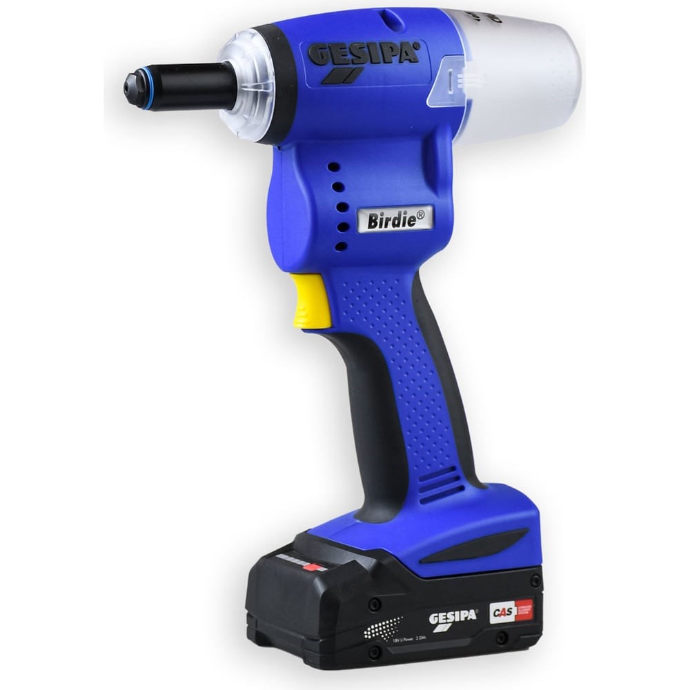 Заклепочник Birdie – это новейший заклёпочник от немецкой компании Gesipa. К отличительным особенностям этой модели относятся: малый вес, компактный корпус, бесщеточный мотор с высокой энерго эффективностью, способность клепать заклепки любого материала диаметром до 5 мм. Характеристики заклепочника: Вес: 900 грамм Сила затяжки: 10 kN Бесщеточный мотор Аккумулятор 18V