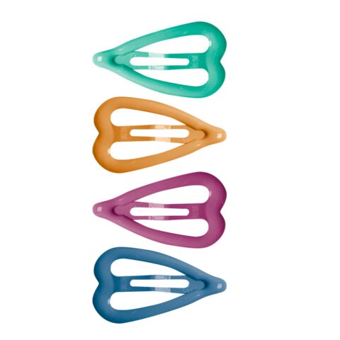 Заколки для волос НАБОР 4 шт., 3,5 см, клик-клак, сердечки, глянцевый, разные цвета, MONTE VITA (МОНТЕ ВИТА), 457082