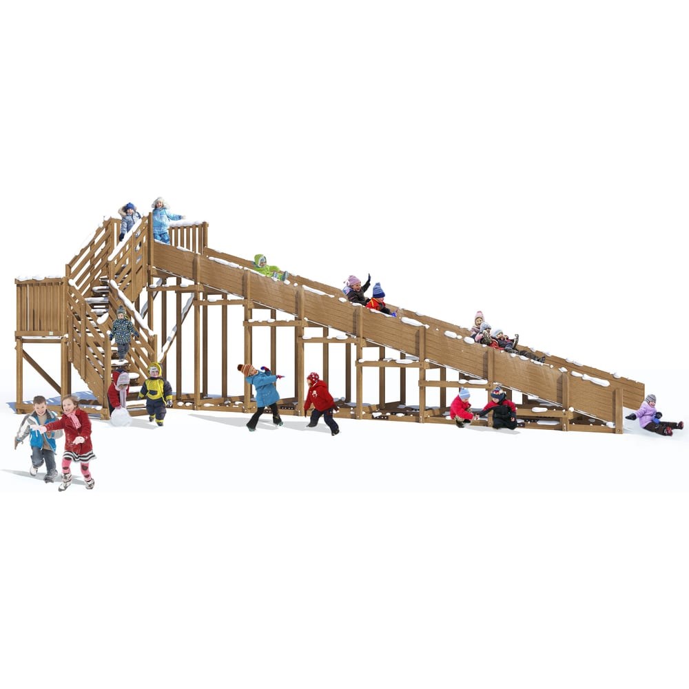 Детская заливная горка MoyDvor Swan-3 будет пользоваться популярностью на территории пансионата, дома отдыха или коттеджного поселка, где смогут кататься все дети сразу. Длинный огороженный бортиками спуск позволит безопасно наслаждаться активным зимним отдыхов, а не сидеть дома. Несущие конструкции горки SWAN-3 сделаны из клеёного бруса шириной 80 мм, а основной материал спуска — сосна и ель, высушенная до 12-14 процентов влажности, тщательно отшлифованная и покрытая специальным защитным составом от гниения. Для удобства и безопасности детей устанавливайте зимнюю горку на ровную поверхность, чтобы с каждой стороны было по 1.8 метра свободного пространства, а спереди места хватало для остановки тюбинга. К земле зимняя горка крепится с помощью анкеров, которые идут в комплекте. Для безопасности детей рекомендуется регулярно очищать ступени горки от льда и снега.