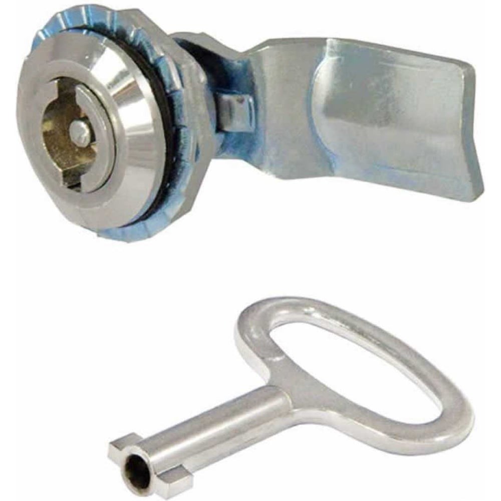 Щитовой замок серии 705 с цельнометаллическим ключом. Применяется для установки в электрощитовом оборудовании, металлических шкафах, панелях, дверцах металлических ящиков, а также широко используется в электротехнической продукции. Имеет два уплотнительных резиновых кольца, внутреннее и внешнее. Внешнее резиновое уплотнительное кольцо позволяет замку плотно прилегать к поверхности дверцы. Внутреннее уплотнительное кольцо не позволяет пыли и влаге проникать внутрь. Степень защиты замка IP66. Замок MS705-2 (ключ бабочка, изогнутый ригель) для щитовых дверей из металла правого и левого открывания. Изготовлен из стали и сплава ЦАМ с защитным покрытием цвета хрома. Вариант исполнения изделия — универсальный с одним ригелем. В комплектацию не входит ответная планка. Щитовой замок 705 с ключом бабочка сертифицирован 1 класс по ГОСТ 5089-2011. В комплект замка входит ключ бабочка с одной секретностью, что облегчает работу обслуживающих компаний и позволяет не иметь при себе лишние связки ключей. Технические характеристики: максимальный вылет засова 45 мм, диаметр засова 3 мм, не менее 600 тыс. циклов наработки. Замки щитовые выпускаются в соответствии с ТУ 4981-001-35504961-2004.