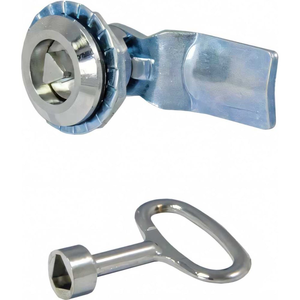 Щитовой замок серии 705 с цельнометаллическим ключом. Применяется для установки в электрощитовом оборудовании, металлических шкафах, панелях, дверцах металлических ящиков, а также широко используется в электротехнической продукции. Имеет два уплотнительных резиновых кольца, внутреннее и внешнее. Внешнее резиновое уплотнительное кольцо позволяет замку плотно прилегать к поверхности дверцы. Внутреннее уплотнительное кольцо не позволяет пыли и влаге проникать внутрь. Степень защиты замка IP66. Замок MS-705-4 (треугольный ключ, ригель изогнут на 7 мм) для щитовых дверей из металла правого и левого открывания. Изготовлен из стали и сплава ЦАМ с защитным покрытием цвета хрома. Вариант исполнения изделия — универсальный с одним ригелем. В комплектацию не входит ответная планка. Особенности: Габаритные размеры — 30х27 мм. Щитовой замок 705 с треугольным ключом сертифицирован 1 класс по ГОСТ 5089-2011. В комплект замка входит трехгранный ключ с одной секретностью, что облегчает работу обслуживающих компаний и позволяет не иметь при себе лишние связки ключей. Технические характеристики: максимальный вылет засова 45 мм, диаметр засова 3 мм, не менее 600 тыс. циклов наработки. Замки щитовые выпускаются в соответствии с ТУ 4981-001-35504961-2004.