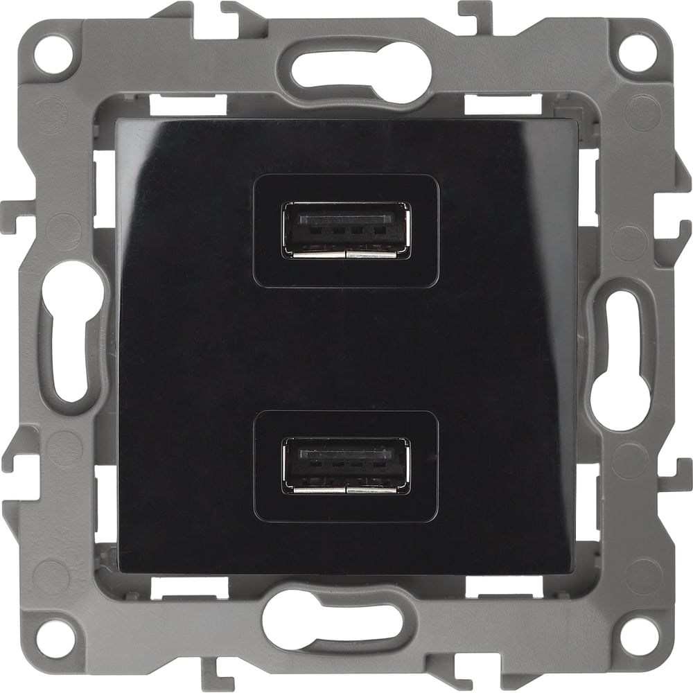 Зарядное устройство USB ЭРА 12-4110-06 230В/5В-2100мА, IP20, 12, чёрный Б0027496 сделано из поликарбоната. Монтаж в подрозетник производится и на лапки, и на винты. Рамка приобретается отдельно.