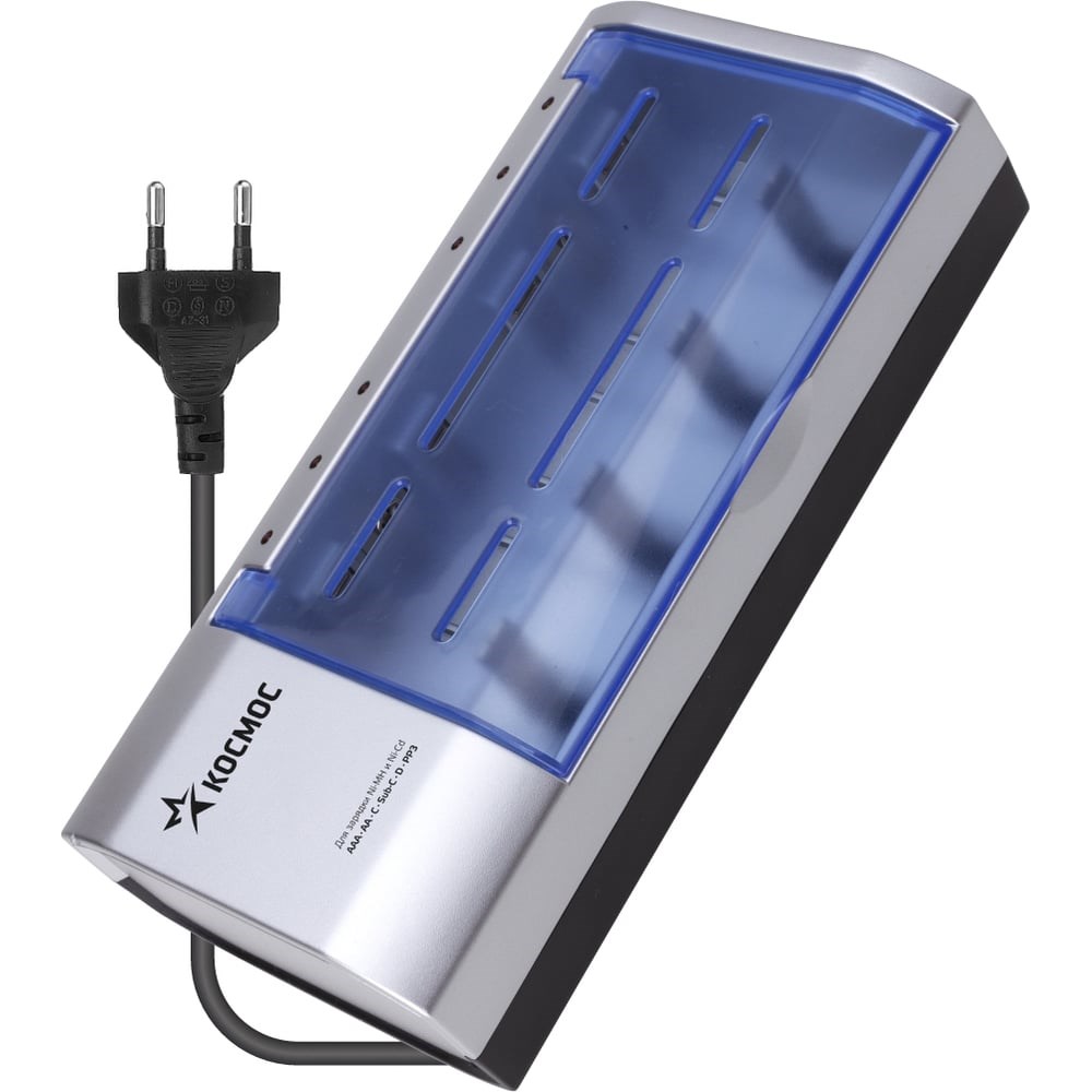 Четырехканальное зарядное устройство 509, без аккумулятора КОСМОС KOC509 - универсальное и многофункциональное зарядное устройство с ручным переключением режимов. Режим быстрой зарядки удобен для быстрой зарядки днём, когда пользователь сам отключит устройство. Режим щадящей зарядки: аккумуляторы просто можно оставить на ночь, не опасаясь излишней перезарядки. Режим-тест: светодиодный индикатор помогает отличить заряженные и не заряженные аккумуляторы, и обычные батарейки.
