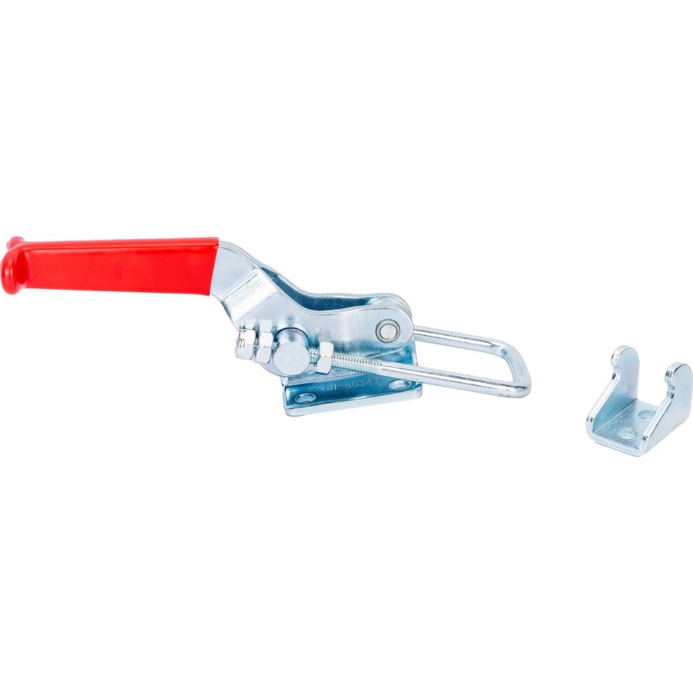 Защелка WOODWORK с блокировкой, усилие 900 кг GH-40341 имеет сверхмощный механический зажим стягивающего типа со скобой. Предназначена для стягивания двух поверхностей в одной плоскости. Горизонтальный механический прижим обеспечивает надежную фиксацию разнообразных заготовок из древесины, металла, пластмассы и прочих материалов. Широко применяется для эксплуатации в различных промышленных отраслях для качественного пиления, сверления, сварки, резки или сборки различных конструкций. Рычаги регулируемой длины, жестко соединенные между собой, увеличивают силу, прикладываемую к рукояти. Эргономичная прорезиненная рукоять на рычаге обеспечивает комфортную эксплуатацию.