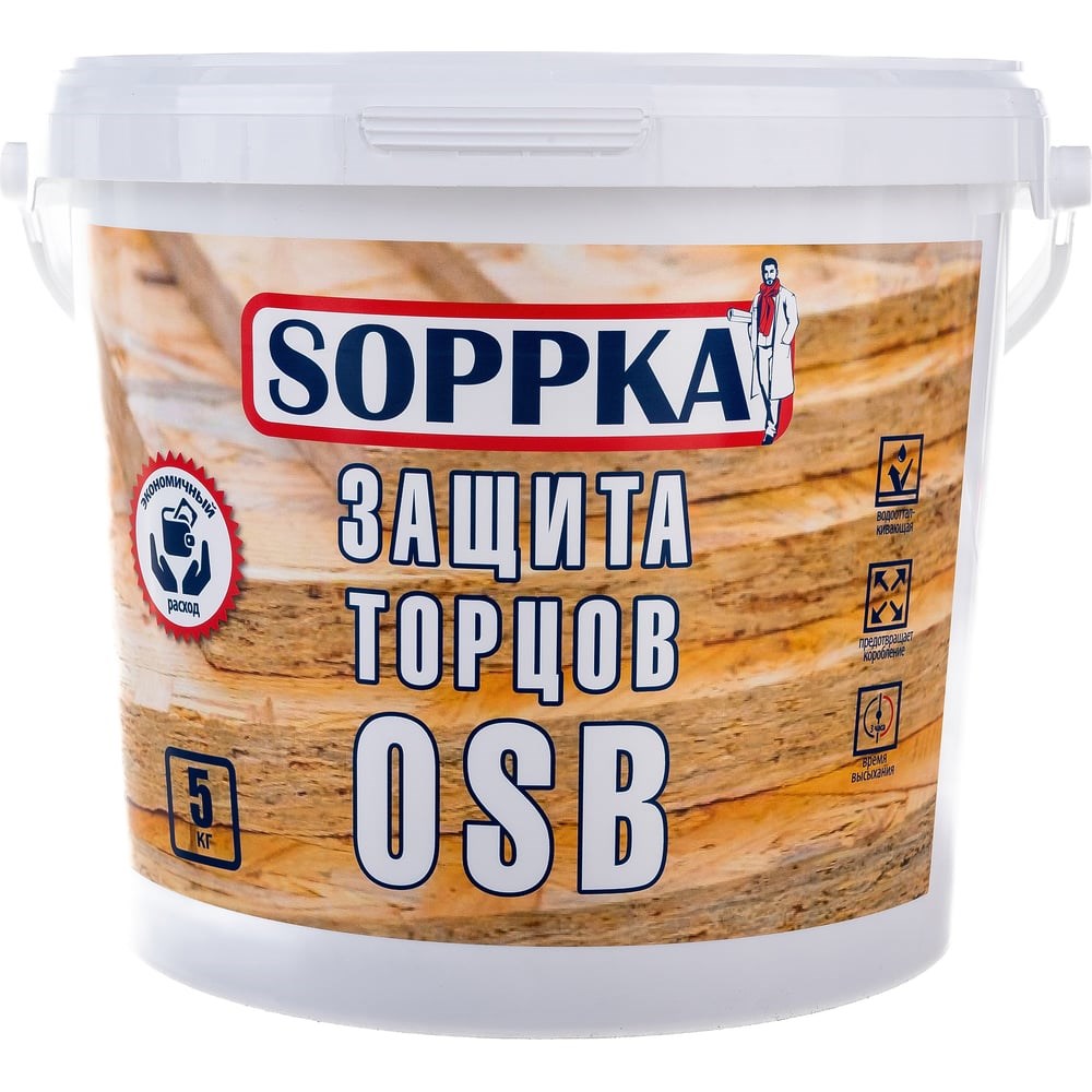 Защита торцов SOPPKA OSB 5 кг СОП-Торц5 предназначена для окрашивания кромок OSB, фанеры. Состав рекомендован для торцевой обработки плит OSB с целью укрепления и защиты от влаги, предотвращения разбухания и коробления плит в процессе эксплуатации. Используется как внутри, так и снаружи помещений.