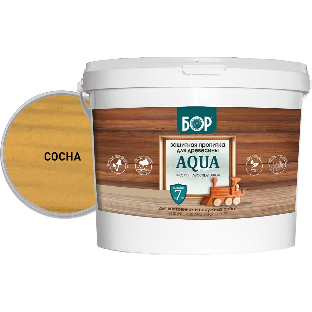 ЗАЩИТНАЯ ПРОПИТКА AQUA I БОР Для защитно-декоративной отделки изделий из всех видов древесины, эксплуатируемых снаружи и внутри помещений. Используется для высококачественной окраски оконных блоков, дверей, наличников, лестниц, плинтусов, мебели, деревянных фасадов, заборов, садовых строений и т.п. ПРЕИМУЩЕСТВА · Обладает хорошей пропитывающей способностью · Защищает древесину от биологических повреждений · Имеет великолепные свойства отпугивания насекомых · Двойной УФ-фильтр увеличивает устойчивость покрытия к солнечному излучению · Защищает цвет покрытия от выгорания · Образует на поверхности древесины шелковистое покрытие с оптимальной проницаемостью для водяных паров и одновременно герметичное к капельной влаге · Декорирует древесину под ценные породы дерева · Сохраняет природную текстуру дерева · Пропитка удобна при нанесении – не стекает с кисти и вертикальных поверхностей · Все цвета можно смешивать между собой для получения новых оригинальных оттенков · Без запаха ПОДГОТОВКА ПОВЕРХНОСТИ Поверхность высушить, тщательно отшлифовать, очистить от пыли и провести контрольное нанесение на небольшом участке. Древесину хвойных деревьев, очистить тканью, смоченной в уайт-спирите и выдержать до полного испарения растворителя. ПОДГОТОВКА ПРОПИТКИ Пропитка готова к применению, при необходимости возможно разбавление водой, но не более 10% по массе. Перед применением пропитку необходимо перемешать.