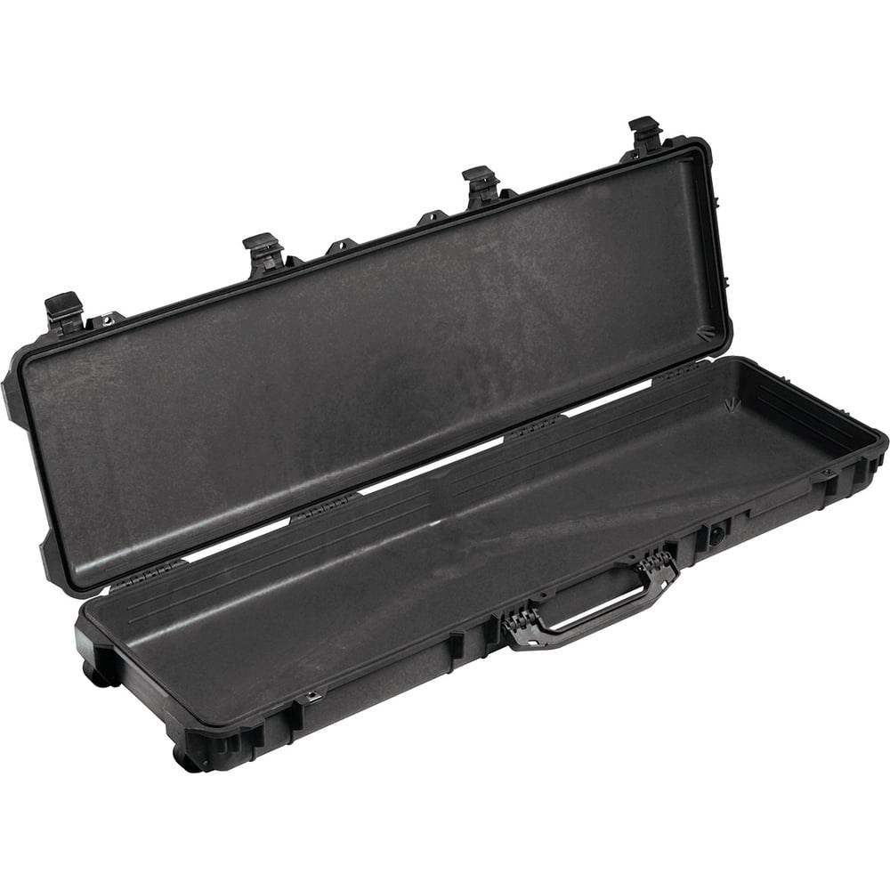 Защитный кейс Pelican 1750 черный пустой 1750-001-110E поставляется с парой колес и удобными складными рукоятками для переноски. Внутреннее пространство обладает габаритами для перевозки грузов до 138 см. Есть клапан для сброса избыточного давления. Изделие выполнено из специального пластика, устойчивого к ударам и перепадам температуры. В отличие от большинства типовых полимеров кейс не испытывает температурных деформаций, а также выдерживает точечные попадания.