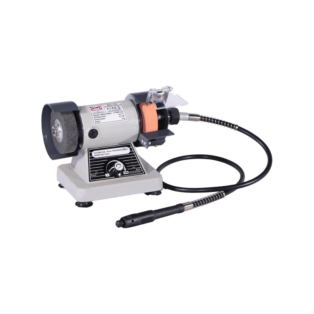 Заточной станок PROMA BKL-750 25450075 обеспечивает качественную шлифовку, полировку и обточку небольших предметов. В конструкцию входит гравер, что расширяет сферу применения устройства. Модель активно применяется в бытовой сфере и не требует от пользователя специальных навыков по заточке инструмента. Компактное приспособление не создает проблем при хранении. Прочный корпус способствует долгому сроку службы.