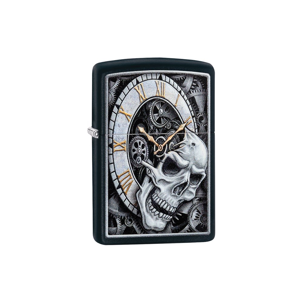Зажигалка ZIPPO Skull Clock, с покрытием Black Matte, 36x12x56 мм, 29854 имеет стандартную форму корпуса, которая удобно лежит в руке. Покрытие Black Matte обеспечивает приятные тактильные ощущения и устойчивость к загрязнению и истиранию. Зажигалку можно использовать многократно, потому что имеется возможность заправки. Внимание! Зажигалка поставляется незаправленной!