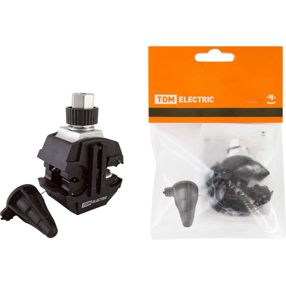 Герметичный зажим TDM ELECTRIC для ответвления от неизолированного проводника ЗГОНП 16-120/16-35 N640 розничная упаковка SQ0412-1009 изготовлен из полимера, устойчивого к ультрафиолетовому излучению и погодно-климатическим условиям, и металлического сплава, устойчивого к воздействию коррозии.