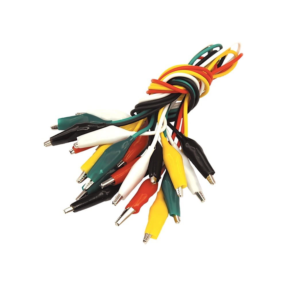 Зажим-крокодил с проводом REXANT (5А 40 мм) представляет собой изолированный провод длиной 40мм, с обеих сторон которого располагаются зажимы. Предназначены для оперативного соединения или разъединения контактов при выполнении измерительных работ или монтажа электрических и слаботочных сетей.Зажим получил свое название за схожесть с челюстями крокодила. Состоит он из двух фигурных деталей с «крокодильими» зубцами, скрепленных серединами специальным штифтом и способных поворачиваться на некоторый угол вокруг оси соединения. Сжатие «челюстей» обеспечивается пружиной, вставленной с другой стороны штифта. Контактная часть изделия изготавливается из стали с никелированным покрытием и полностью закрыта изолятором.В целях безопасной эксплуатации зажимов, изоляция, изготовленная из ПВХ, исключит случайное контактирование с другими токонесущими частями и предохранит от поражения специалиста электрическим током.Набор состоит из 10 пар зажимов (по 2-е пары каждого цвета). Конструкция изделия проста и надежна, что гарантирует его использование в течение длительного времени без потери функциональных свойств.