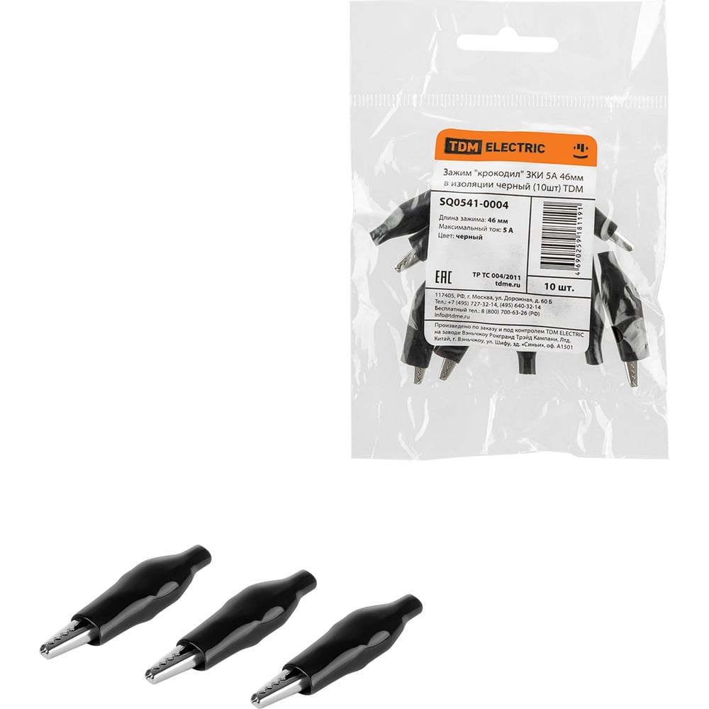 Зажим для проводов (крокодил) ЗКИ 5А 46мм в изоляции черный упаковка 10 штук TDM Electric - это надежное и удобное решение для фиксации и временного соединения проводников. Произведенный компанией TDM Electric, этот продукт зарекомендовал себя как надежный и качественный инструмент для работы с электрическими и электронными системами. Зажимы "крокодил" незаменимы для временного соединения проводов или их фиксации. Они удобны и просты в эксплуатации, а их использование максимально безопасно благодаря тому, что зажимы находятся полностью внутри изолятора. Зажимы ЗКИ изготовлены из никелированного листового металла и имеют изоляцию из поливинилхлорида (ПВХ). Это обеспечивает их долговечность и безопасность использования. Зажимы ЗКИ имеют номинальную мощность 1.2, номинальную силу тока 5, максимальное и минимальное сечение провода от 0.75 до 1.5 мм2, номинальное напряжение 220 В и термоусадку. В упаковке вы найдете 10 зажимов, каждый из которых имеет 2 контакта. Зажим для проводов (крокодил) ЗКИ 5А 46мм в изоляции черный упаковка 10 штук TDM Electric - это надежный и удобный инструмент для работы с электрическими и электронными системами.