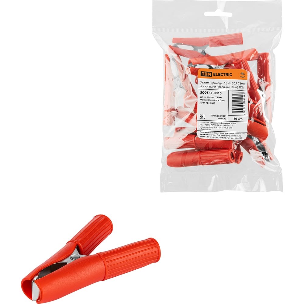 Зажим для проводов (крокодил) ЗКИ 30А 75мм в изоляции красный упаковка 10 штук TDM Electric - это надежное и удобное решение для фиксации и временного соединения проводников. Зажимы "крокодил" незаменимы для временного соединения проводов или их фиксации. Они удобны и просты в эксплуатации, что делает их отличным выбором для использования в различных условиях. Зажимы ЗКИ полностью находятся внутри изолятора, что обеспечивает максимальную безопасность при их использовании. Изолятор изготовлен из поливинилхлорида (ПВХ), что гарантирует его долговечность и устойчивость к внешним воздействиям. Фигурные детали (челюсти) зажимов изготавливаются штамповкой из никелированного листового металла, что обеспечивает их прочность и надежность. Красный цвет зажимов делает их легко заметными на любом фоне, что упрощает их идентификацию и использование. Упаковка по 10 штук оптимальна для реализации через розничные сети, что позволяет удобно и экономично приобретать необходимое количество зажимов. Выбирая зажим для проводов (крокодил) ЗКИ 30А 75мм в изоляции красный упаковка 10 штук TDM Electric, вы получаете надежное и безопасное решение для фиксации и временного соединения проводников, которое будет служить вам долгое время.