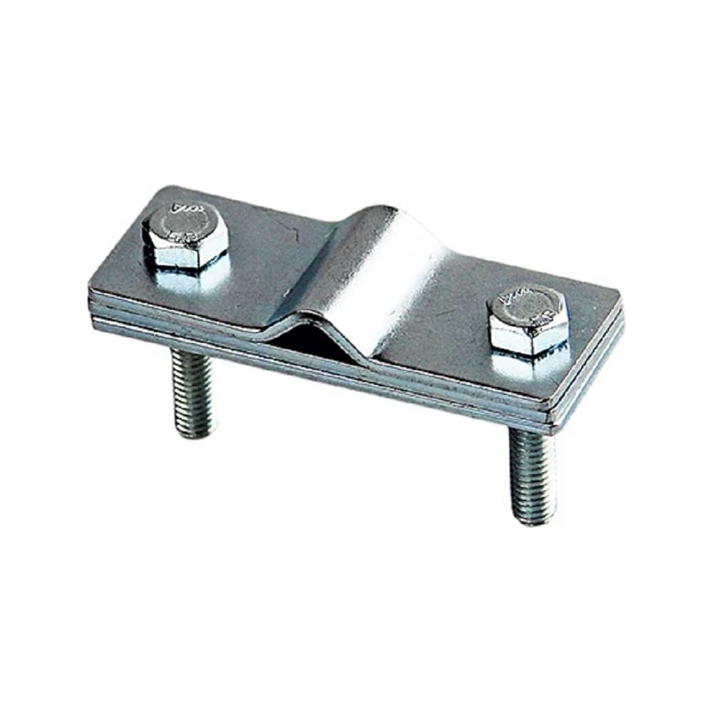 Зажим соединительный прут-прут параллельный (малый) предназначен для параллельного соединения прутка диаметром от 6 до 10 мм с полосой шириной до 40 мм. Зажим изготовлен из оцинкованной стали. Различие с позицией 6003 заключается в размере пластины, в зажиме 6003/1 длина прямой пластины 84 мм