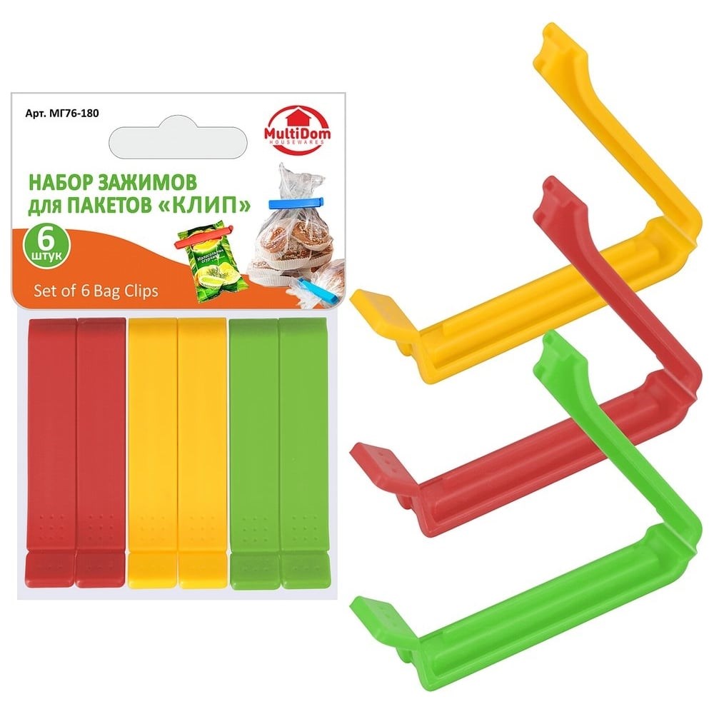 Зажимы для пакетов МУЛЬТИДОМ предназначены для быстрой и герметичной упаковки пакетов с жидкими или сыпучими продуктами. Застежка-клипса позволяет использовать зажимы многократно, легко закрывается и открывается. Зажимы для пакетов великолепно справятся с такими материалами, как полиэтилен и фольга, бумага и тонкий картон, подарочная упаковка. Изделия очень удобны для упаковки пакетов с замороженными фруктовыми и ягодными смесями, позволяют взять нужное количество продукта и вновь герметично упаковать пакет.