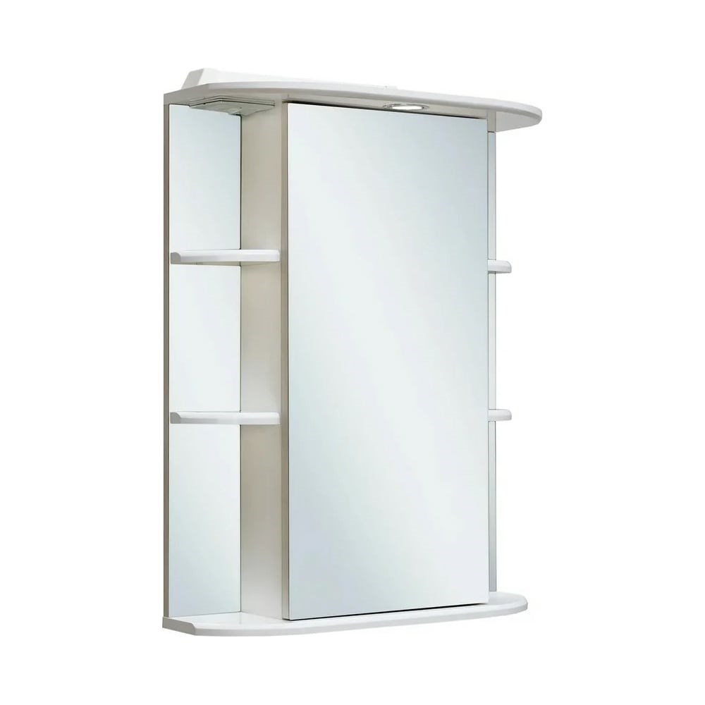 Зеркальный шкаф RUNO Гиро 60 00000000025 - отличное решение для стильного оснащения ванной комнаты. Шкафчик в ванную имеет одну распашную дверцу с зеркальным фасадом (в центре), по бокам по две открытые полки. В шкафу имеются две внутренние полки. Шкаф зеркало для ванной оборудован одним врезным светодиодным светильником 220 В, розеткой с выключателем, петлями со встроенным доводчиком. Мебель для ванной RUNO - красота и практичность в мелочах!