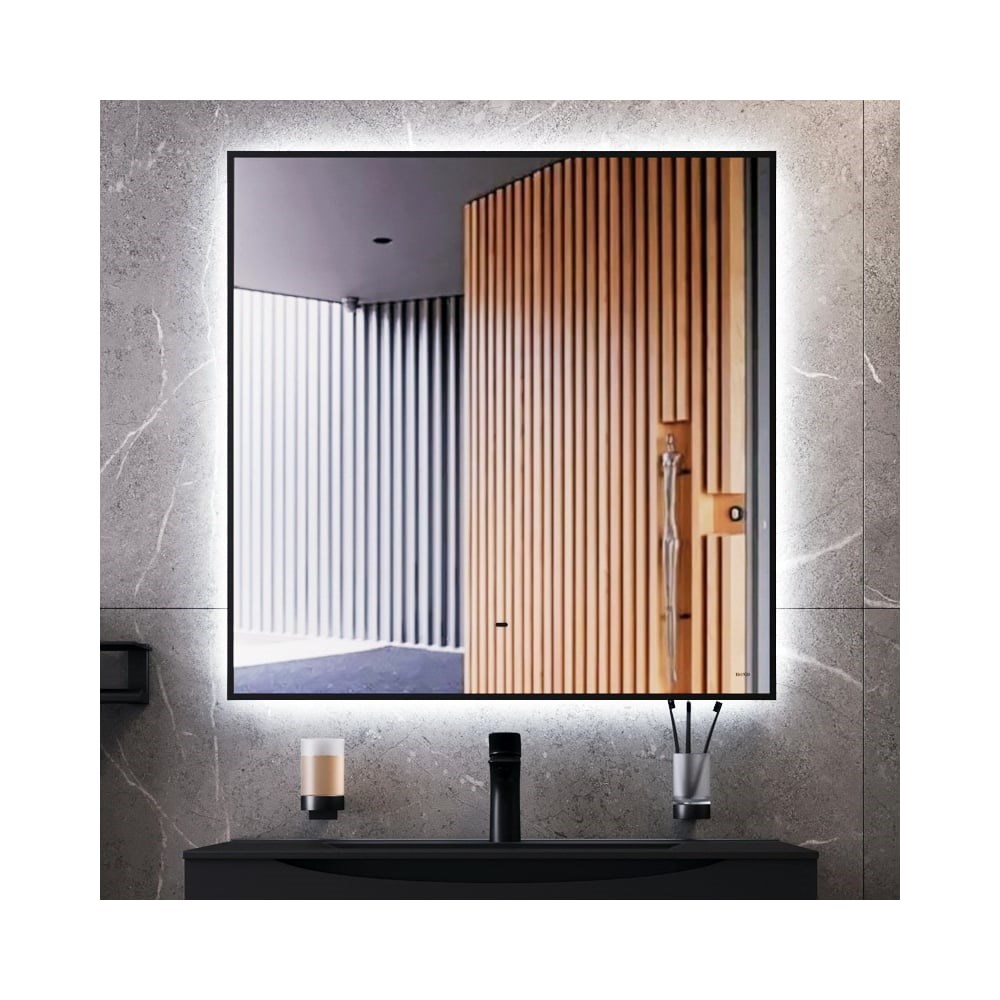 Дизайнерское зеркало лофт квадратное 80х80см с LED подсветкой BOND Cube M36ZE-8080 очень стильно выглядит и круто смотрится в современном интерьере. Оно изготовлено из высококачественных комплектующих от мировых производителей и имеет влагостойкое зеркальное полотно AGC премиум толщиной 4мм европейского производства по стандарту IP 44. Высокую яркость обеспечивает установленная с тыльной стороны светодиодная LED лента, придающая свету эффект затмения. А расположенный по всему периметру черный кант, прекрасно воплощает в изделии суперсовременный лофт стиль и делает его роскошным. Зеркало оснащено беcконтактным сенсорным выключателем с диммером, с помощью которого можно регулировать мощность освещения, просто взмахнув рукой и не оставляя отпечатков на зеркале. С тыльной стороны находятся удобные крепления для установки и шнур с вилкой для включения в розетку.