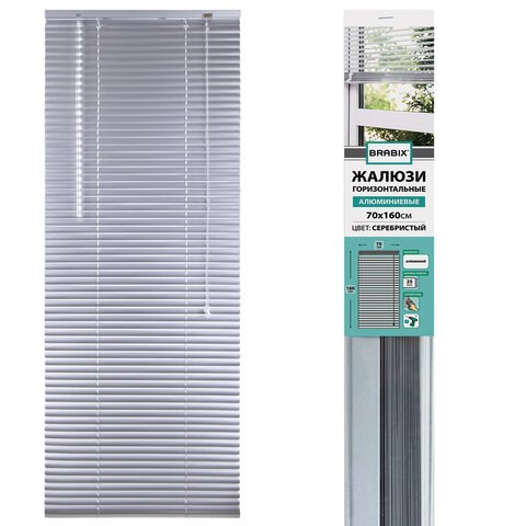 Жалюзи горизонтальные BRABIX 70х160 см, АЛЮМИНИЙ, цвет серебристый, 606037