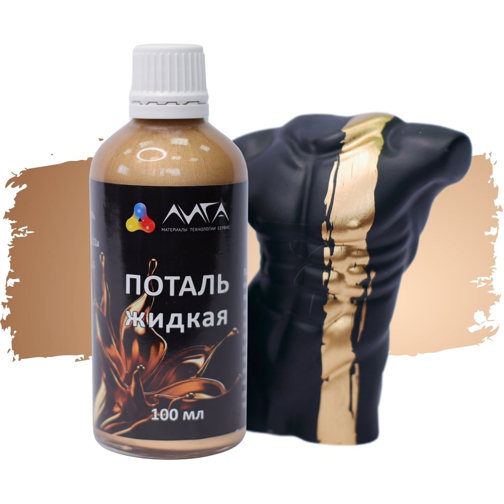 Жидкая поталь Лига Розовое золото (100мл) - это продукт на основе синтетических смол и металлических пигментов имитирующая цвет и блеск сусальных листов. Область применения Используется для декорирования карнизов из ПУ и дерева, отдельных архитектурных элементов, на ненагруженные поверхности, при использовании на нагруженных поверхностях можно перекрыть акриловым лаком, но степень блеска изменится. Рекомендации по применению: - Материал наносится на загрунтованные поверхности. - Cушка после нанесения 10 минут ,полное высыхание через 2 часа -Для защиты от окисления, рекомендуется нанести лак для жидкой потали, артикул Перед нанесением жидкой потали баночку предварительно необходимо взболтать в течении 1 мин, для того чтобы смешать состав. Делать это необходимо очень аккуратно, так как есть риск повреждения целостности. Более надежный вариант - это открыть баночку потали и перемешать смесь отдельной палочкой. Так состав равномерно смешается, работать с ним будет куда проще и удобнее. Жидкая поталь не колеруется с помощью пигментов!