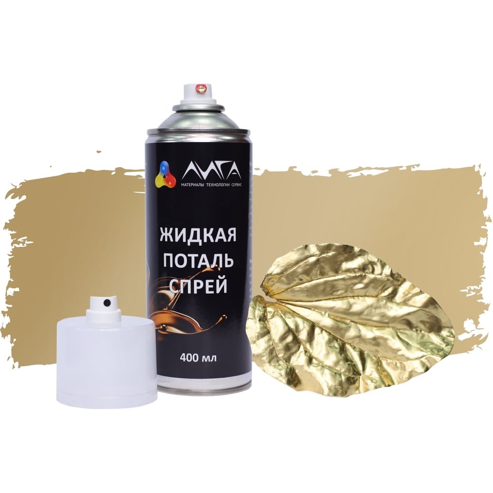 Жидкая поталь спрей Лига Сусальное золото 400мл - это продукт на основе синтетических смол и металлических пигментов имитирующая цвет и блеск сусальных листов. Область применения Используется для декорирования карнизов из ПУ и дерева, отдельных архитектурных элементов, на ненагруженные поверхности, при использовании на нагруженных поверхностях можно перекрыть акриловым лаком, но степень блеска изменится. Материал наносится на загрунтованные поверхности. Cушка после нанесения 10 минут ,полное высыхание через 2 часа Для защиты от окисления, рекомендуется нанести лак для жидкой потали, артикул Перед использованием хорошо взболтать продукт в течении 1 мин.