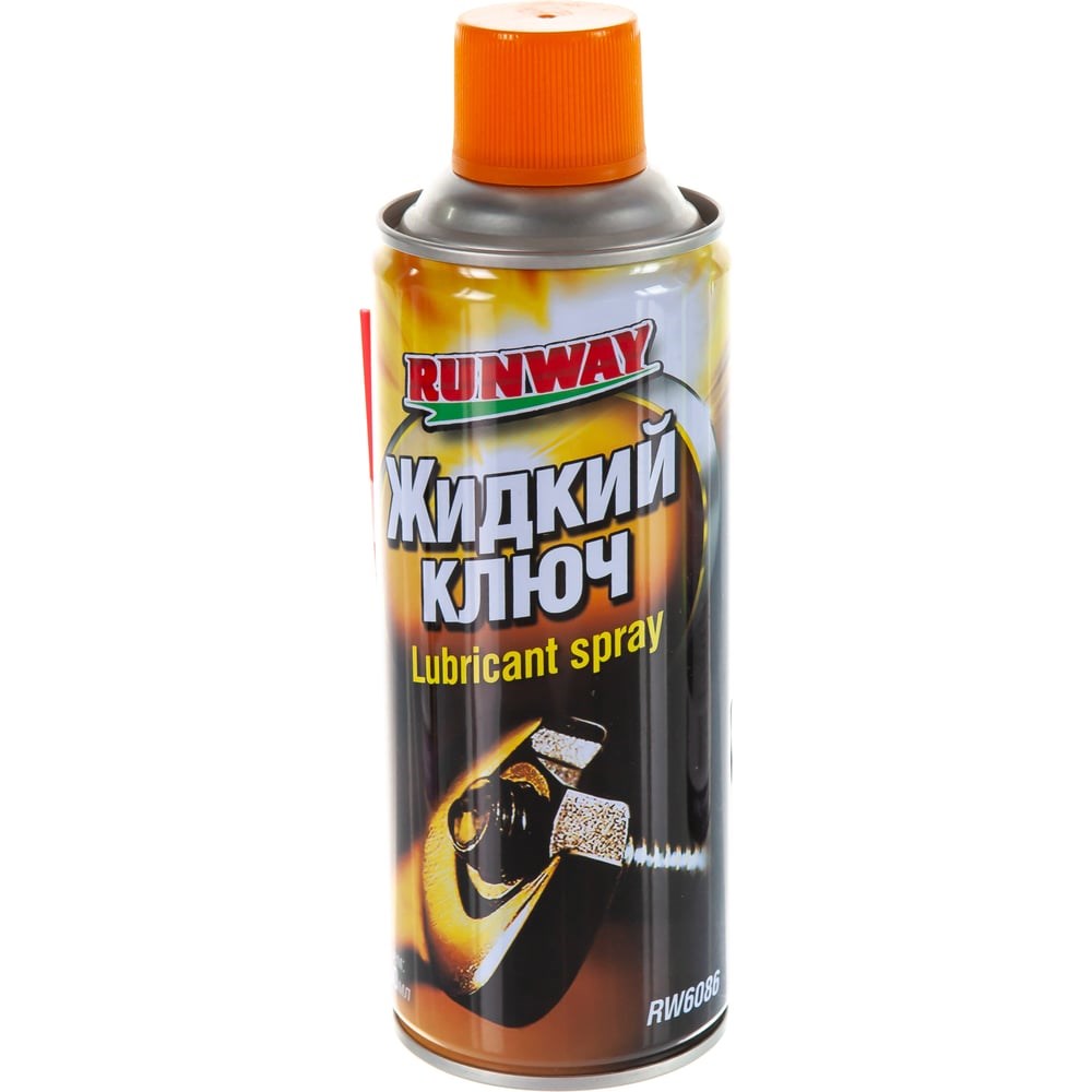 Жидкий ключ RUNWAY RW6086 аэрозоль, 400 мл 32655 быстро и эффективно разъединяет ржавые и прикипевшие резьбовые соединения. Продукт используют для смазки дверных замков, петель и крепежа. Состав вытесняет влагу, не испаряется и после высыхания образует защитную антикоррозионную пленку на поверхности металла.