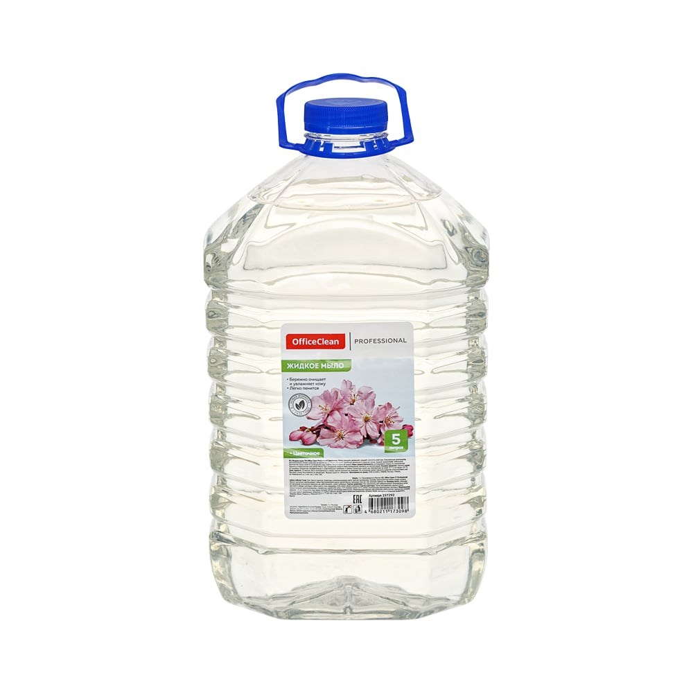 Жидкое мыло OfficeClean Proffesional Цветочное прозрачное, ПЭТ, 5 л 257292/П предназначено для мытья рук и тела. Хорошо пенится, за счёт чего имеет экономичный расход. Легко смывается проточной водой, поэтому не требует сложного ухода, что экономит время. Благодаря увлажняющим компонентам не сушит кожу, поэтому безопасно в использовании.