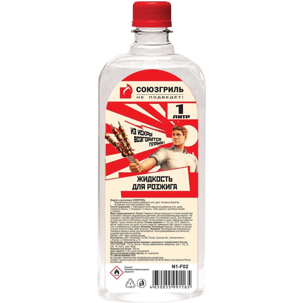 Жидкость для розжига СОЮЗГРИЛЬ термоусадка, 1 литр 37636 предназначена для розжига древесного угля, дров, топливных брикетов. Пригодится на даче, на рыбалке, во время отдыха на природе. Она не изменяет вкус приготовляемых блюд.