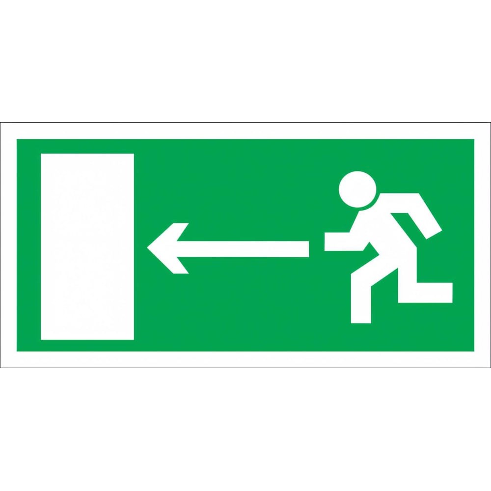 Знак указывает направление движения к эвакуационному выходу, который расположен с левой стороны относительно места установки знака.Устанавливается на стенах помещений для указания направления движения к эвакуационному выходу. Изготовлен в соответствии с ГОСТ 12.4.026-2015.