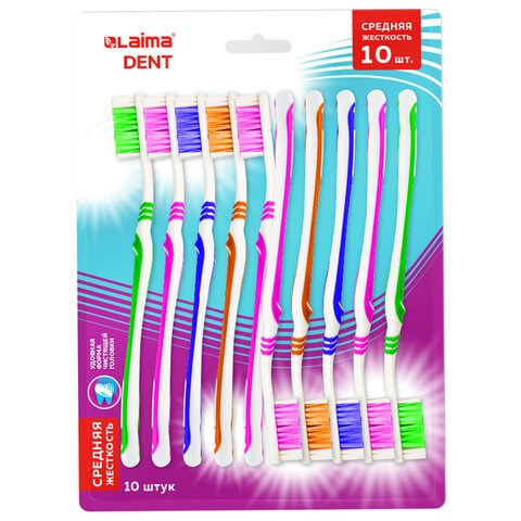 Зубная щетка средней жесткости, КОМПЛЕКТ 10 шт., LAIMA DENT, 609311