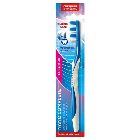 Зубная щетка средней жесткости, LAIMA DENT "Nano Complete", 609316