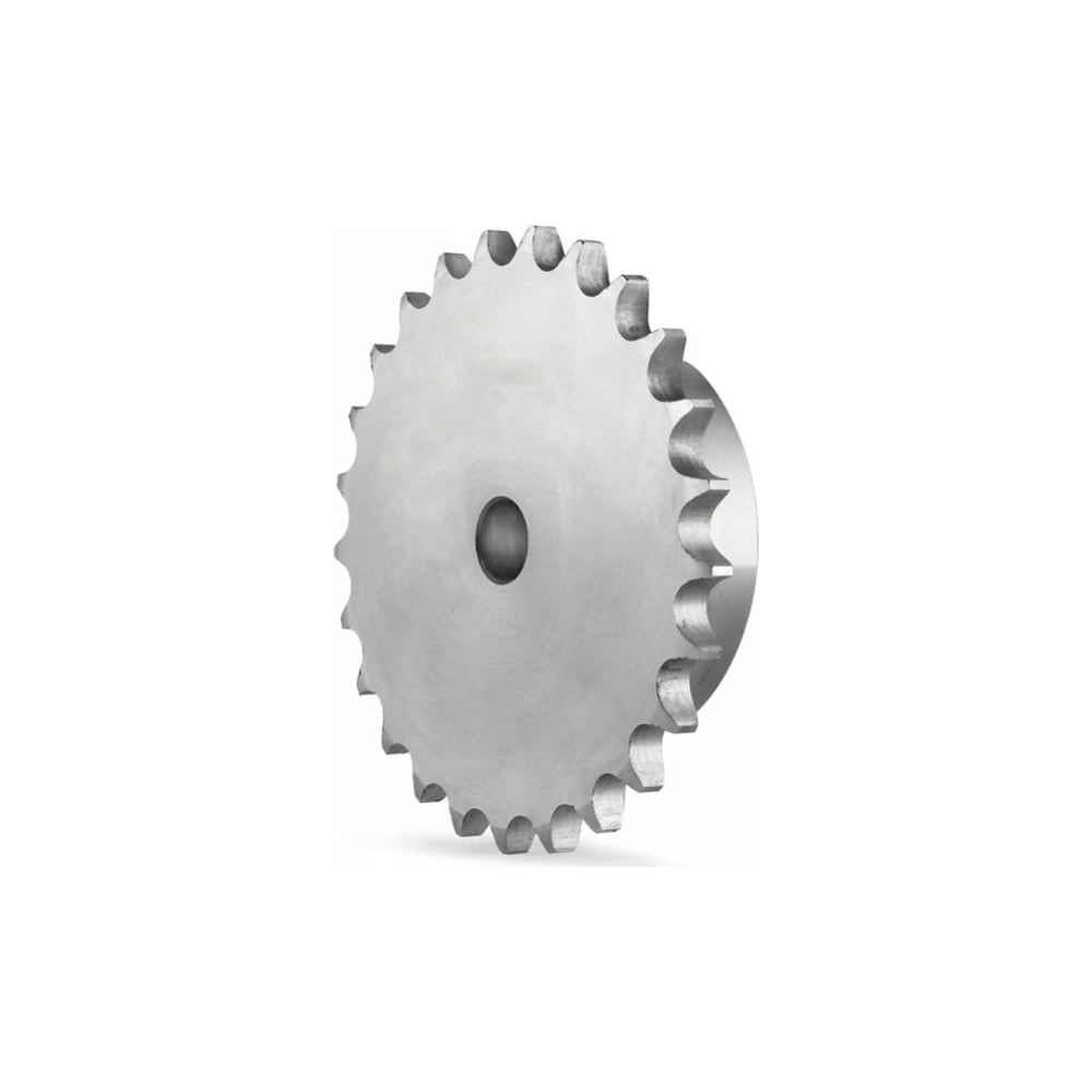 Звездочка со ступицей под расточку – это однорядная звездочка, произведенная из стали С45Е. Применяются в цепной передаче с однорядной цепью. Вместе с цепью она обеспечивает надежное сцепление всех элементов движущего механизма между собой. Звездочка со ступицей под расточку используется в промышленных станках, спецтехнике, и на различных производствах. Изделие относится к самому распространенному типу приводных звезд, которые подходят для выполнения большинства задач. Имеет ступицу для доработки под посадку на вал или другую часть трансмиссии. Внимание! Иллюстративное фото! Параметры товара представлены в таблице технических характеристик.