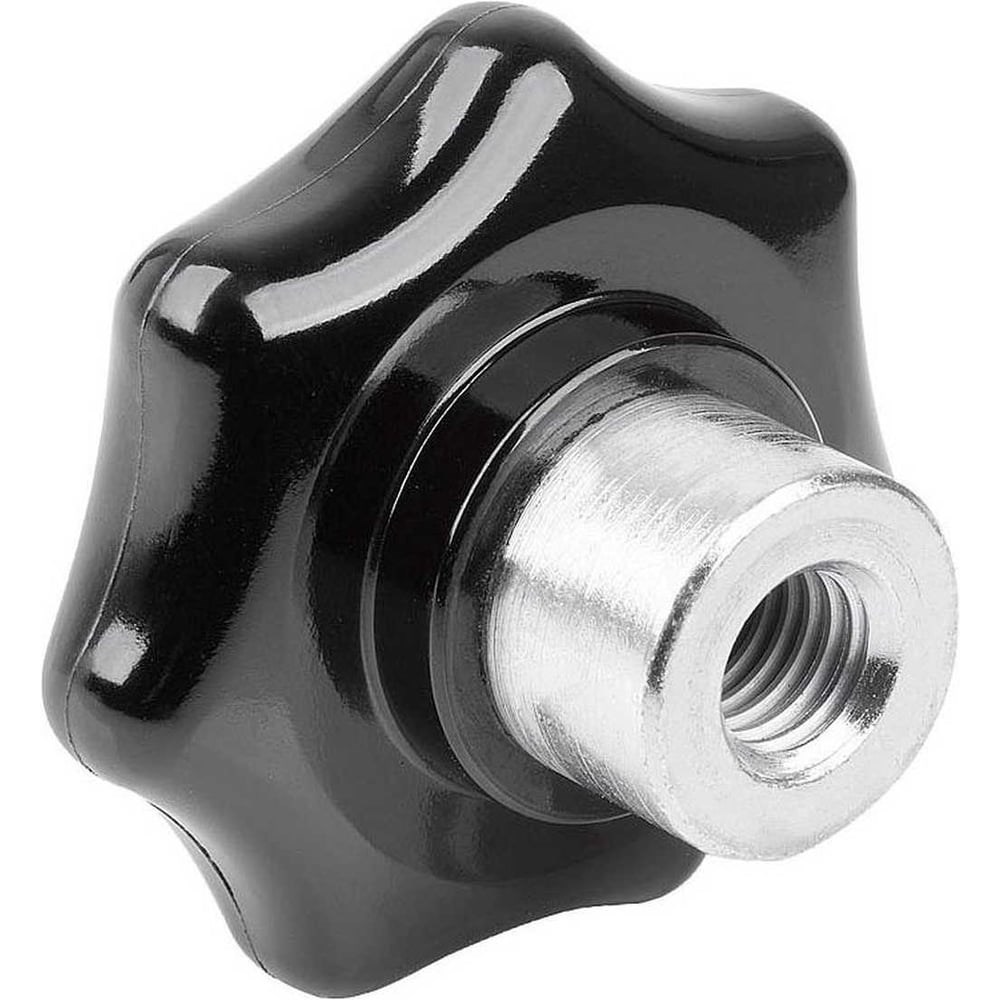 Материалы: Ручка из дуропласта PF 31. Металлические части из нержавеющей стали 1.4305. Исполнение: Дуропласт черного цвета, отполированный до блеска. Нержавеющая сталь без покрытия. Резьба M12. Длина резьбы 17 мм. Указания: Звездообразная ручка отличается закрытым контуром. Опорная поверхность выступающей стальной втулки износостойкая. Поверхность расположена перпендикулярно оси резьбы и обеспечивает устойчивое резьбовое соединение. * Данные ручки хорошо подходят для станков.